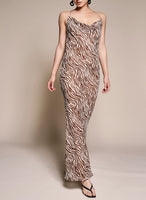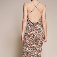 BROWN & NUDE ZEBRA OPEN BACK MAXI DRESS WITH LINING